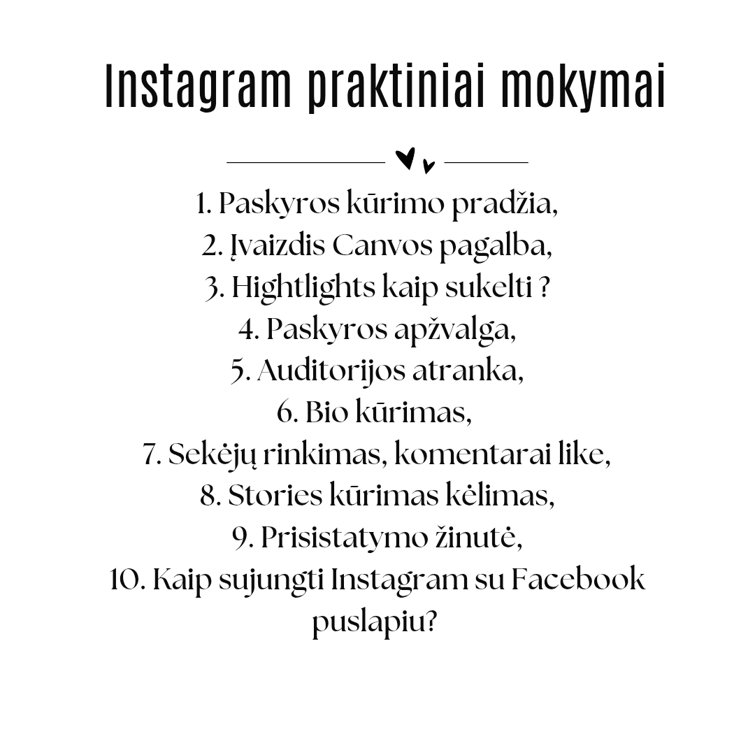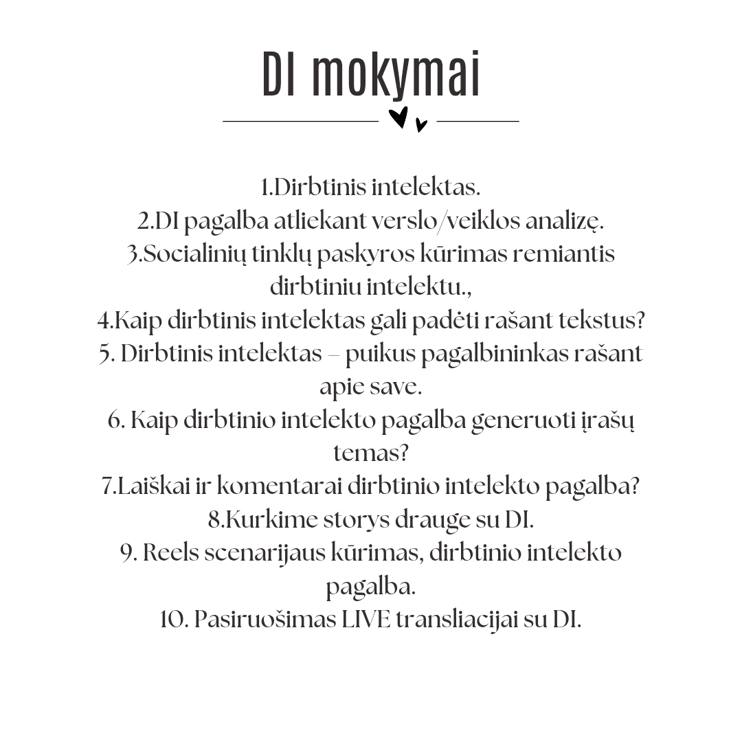 Atrask šiuolaikinius įrankius, kurie padės tau kurti profesionalų turinį, valdyti socialinius tinklus ir dirbti išmaniau. Mokymai parengti taip, kad juos lengvai suprastų net pradedantieji — aiškiai, praktiškai ir be sudėtingų terminų.